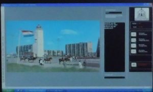 Op de achterzolder zijn twee computers opgesteld, één met het collectie zoekprogramma en één met het foto zoekprogramma.